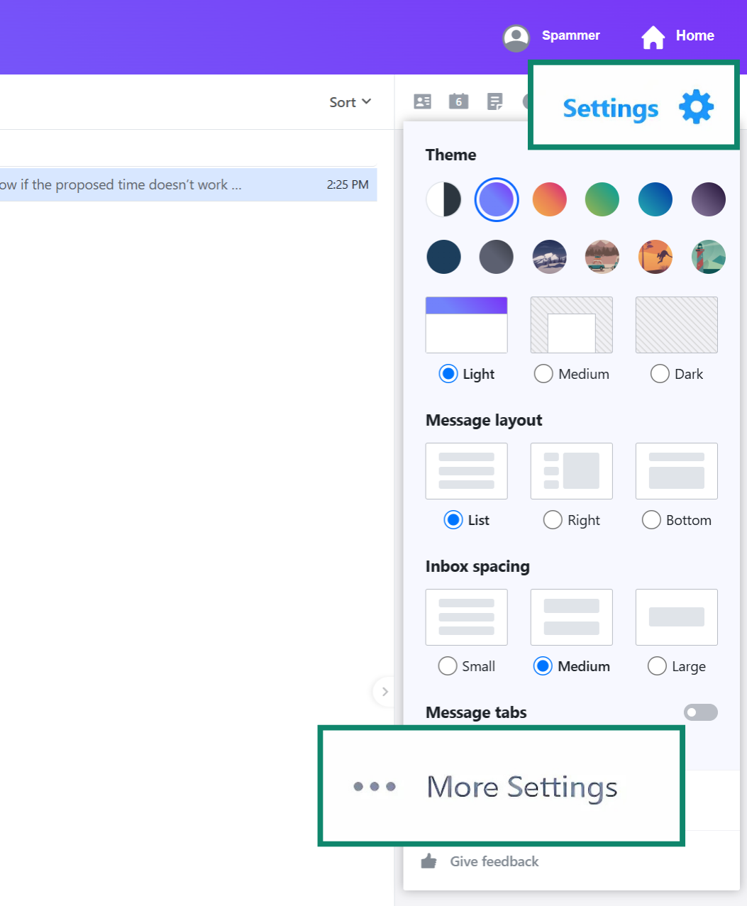 3. In the top-right corner, open Gmail settings and choose Block [sender] to stop receiving all messages from that address.