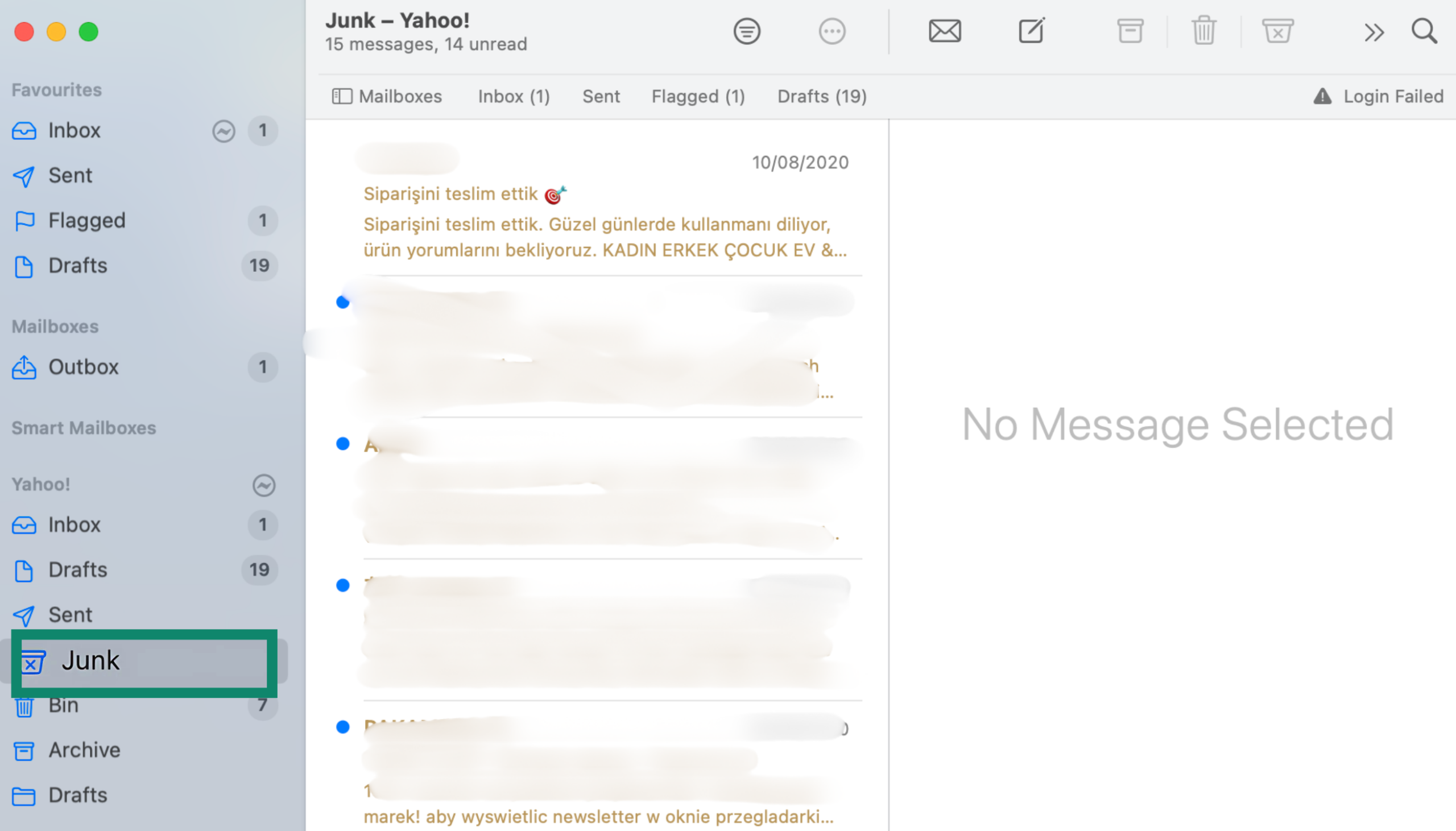 1. Open Apple Mail and select the Junk folder from the sidebar.