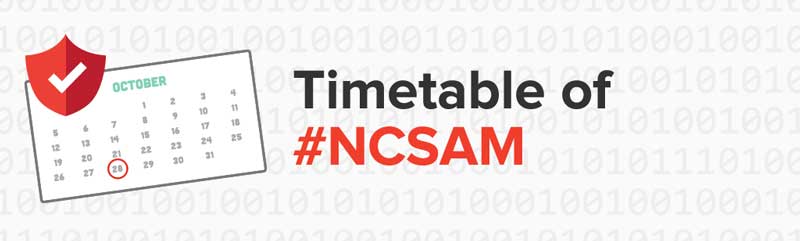 This year's NCSAM has been broken down into weekly themes. Here is an abbreviated timetable. For more information, please visit https://www.staysafeonline.org/ncsam/about.