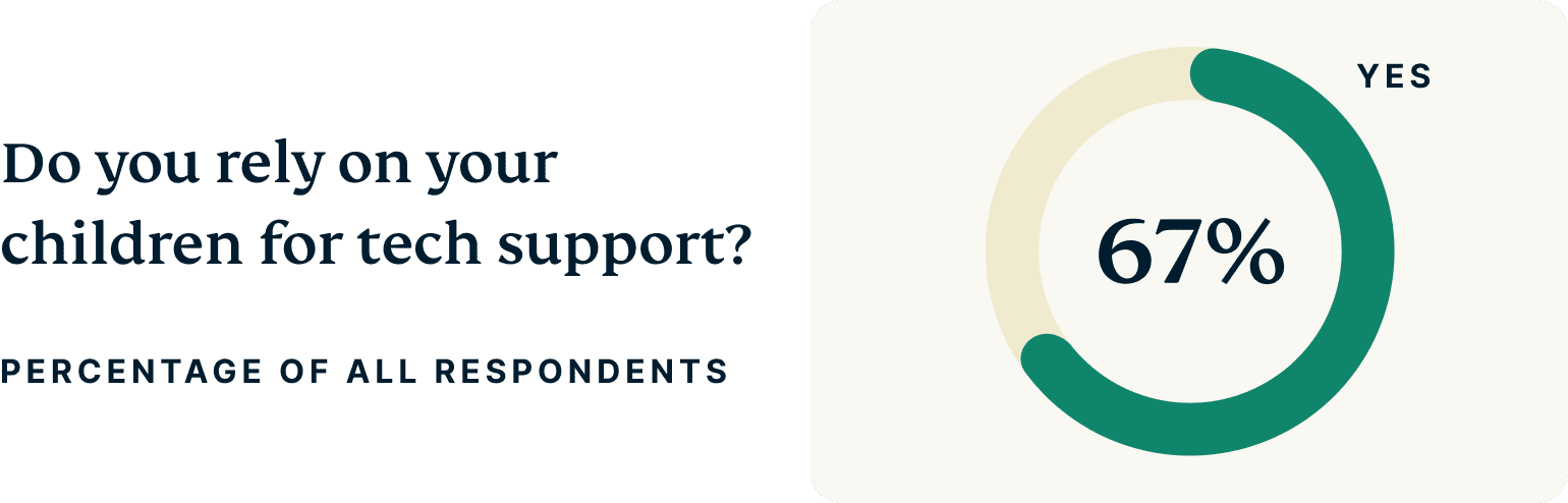 Do you rely on your children for tech support? (% of respondents who said yes)
