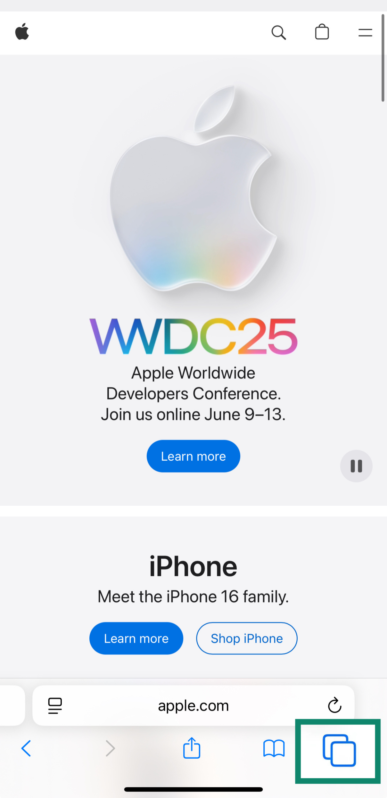 1. Tap the tabs icon at the bottom of the screen.