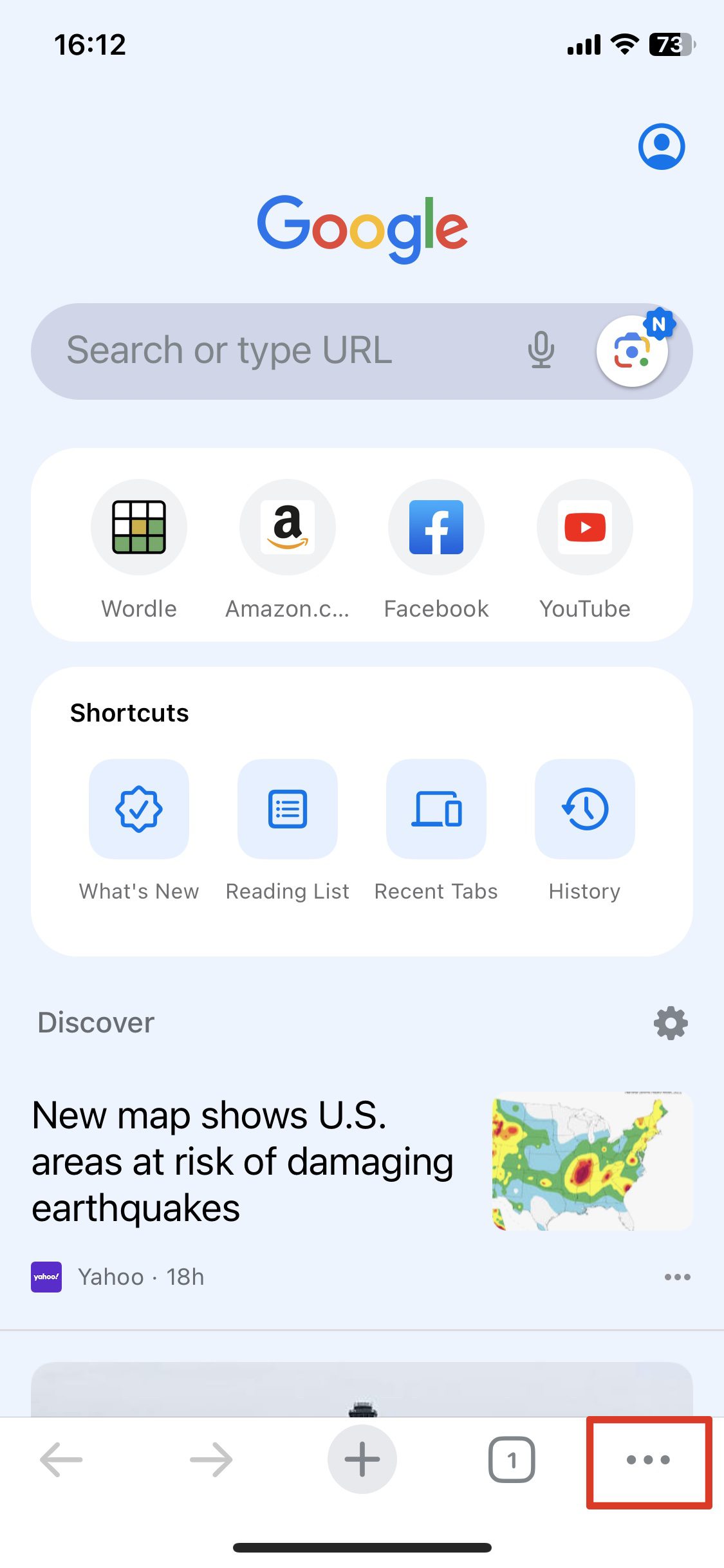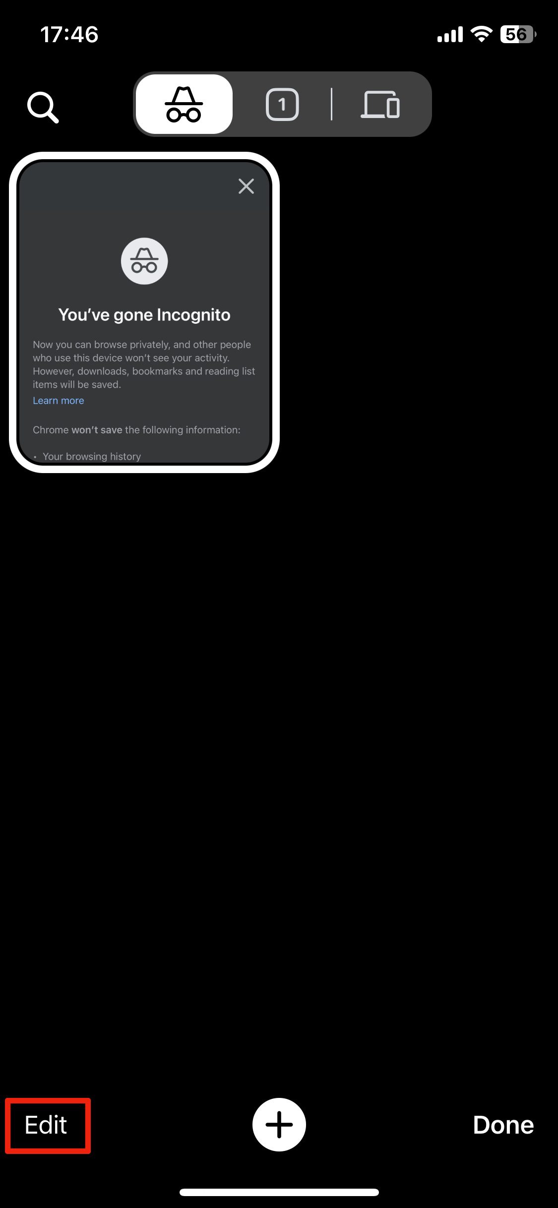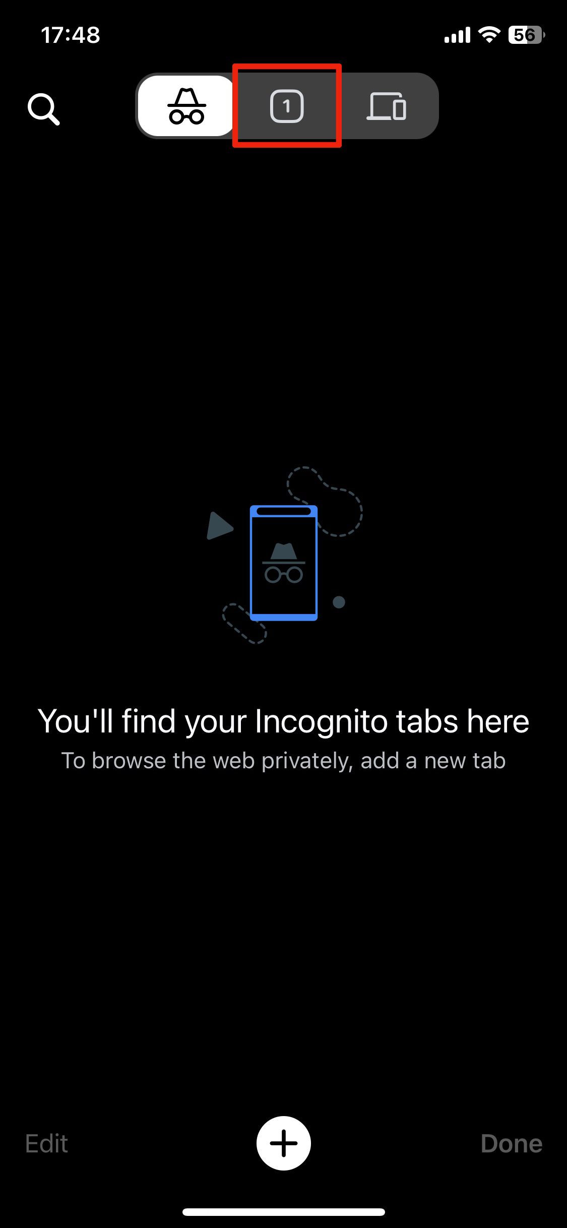 - Tippen Sie auf den Tabs-Button (ein Quadrat mit einer Zahl) am unteren Bildschirmrand.