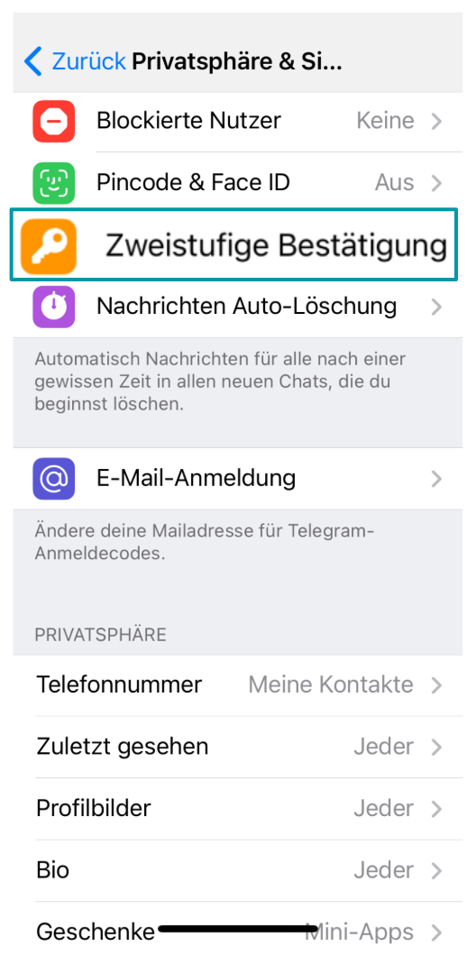Die Zwei-Faktor-Authentifizierung fügt Ihrem Telegram-Konto eine zusätzliche Schutzschicht hinzu. Selbst wenn jemand Ihr Passwort errät, kann er sich ohne einen zweiten Code nicht anmelden.