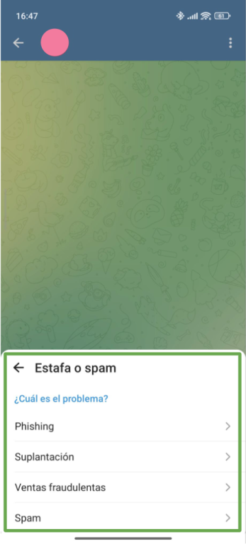 Denunciar a un usuario o grupo que se dedique a estafar a la gente ayuda a que Telegram sea más eficiente a la hora de detectar las cuentas falsas y bloquearlas.