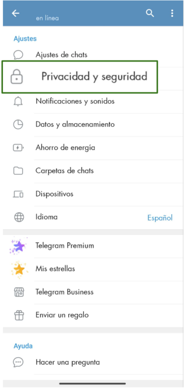 1. Abre la aplicación de Telegram y ve a Configuración. En Android, haz clic en las tres barras horizontales de la parte superior derecha; en iOS, haz clic en la opción Ajustes.
