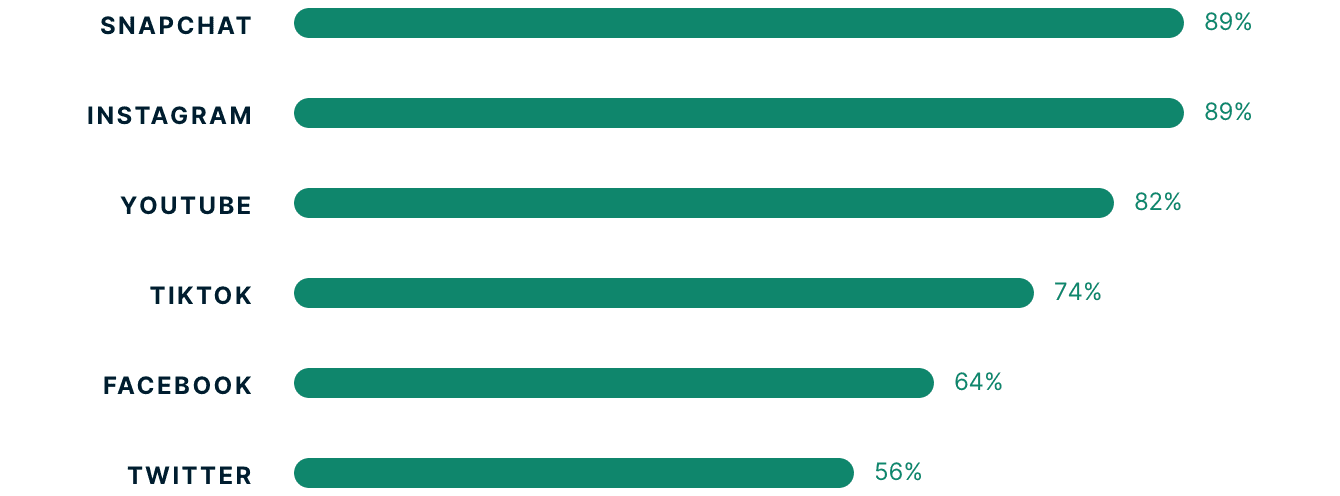 Facebook et Twitter contrastent fortement avec cette tendance. La plupart des personnes interrogées, faisant partie de la génération Z, qui ont un compte sur ces plateformes l'utilisent moins de 15 minutes par jour, ou n'ont pas de compte du tout sur ces plateformes.