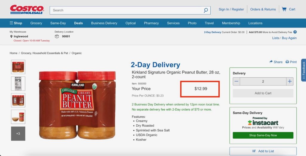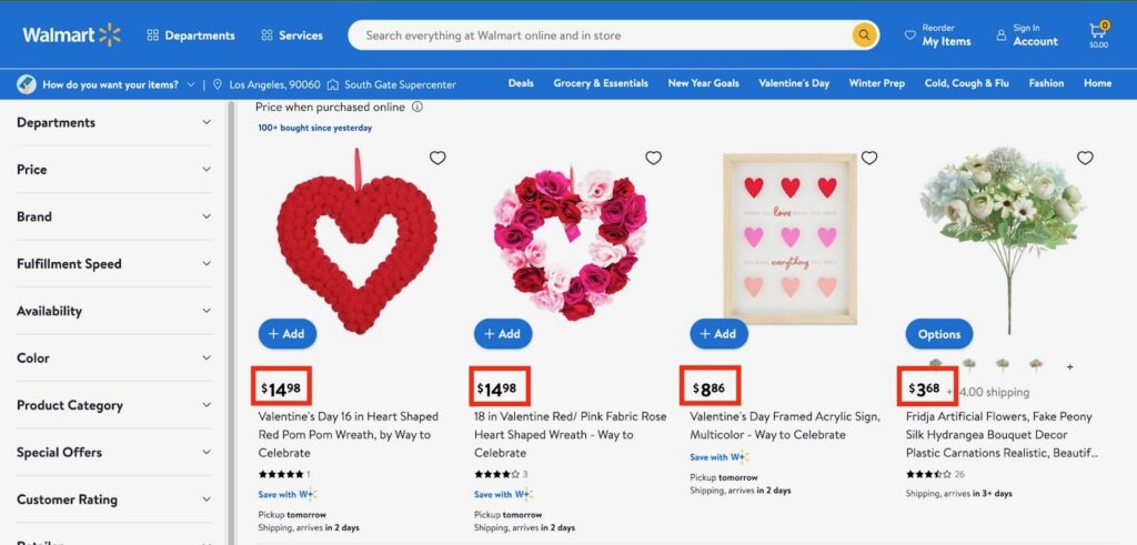3. Walmart : Propose une large gamme de produits à des prix compétitifs, avec la possibilité d'un retrait en magasin.