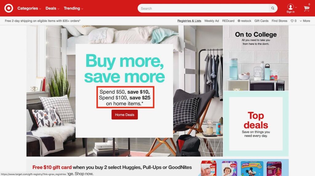 5. Target : Propose une grande variété de produits, des vêtements aux articles ménagers, et offre souvent la possibilité d'un retrait en magasin.