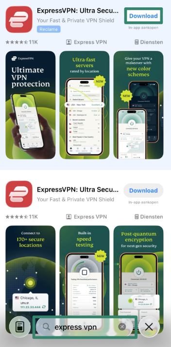 - Zoek naar "ExpressVPN” en tik op Downloaden om de app te installeren.