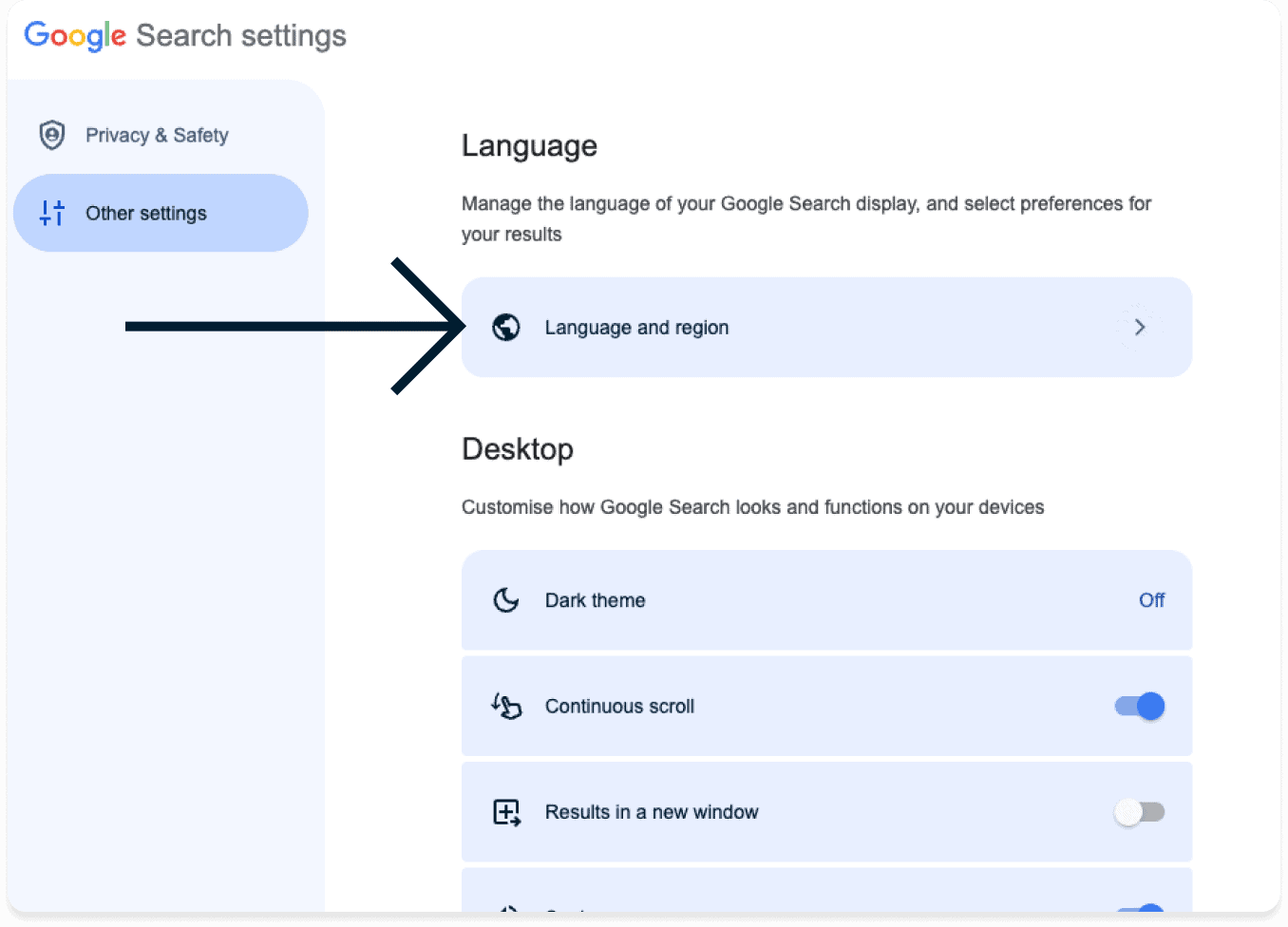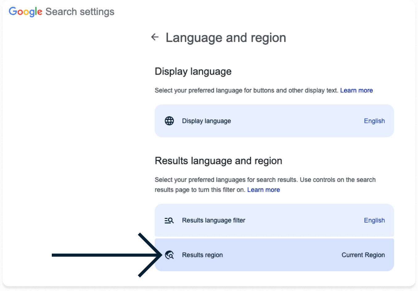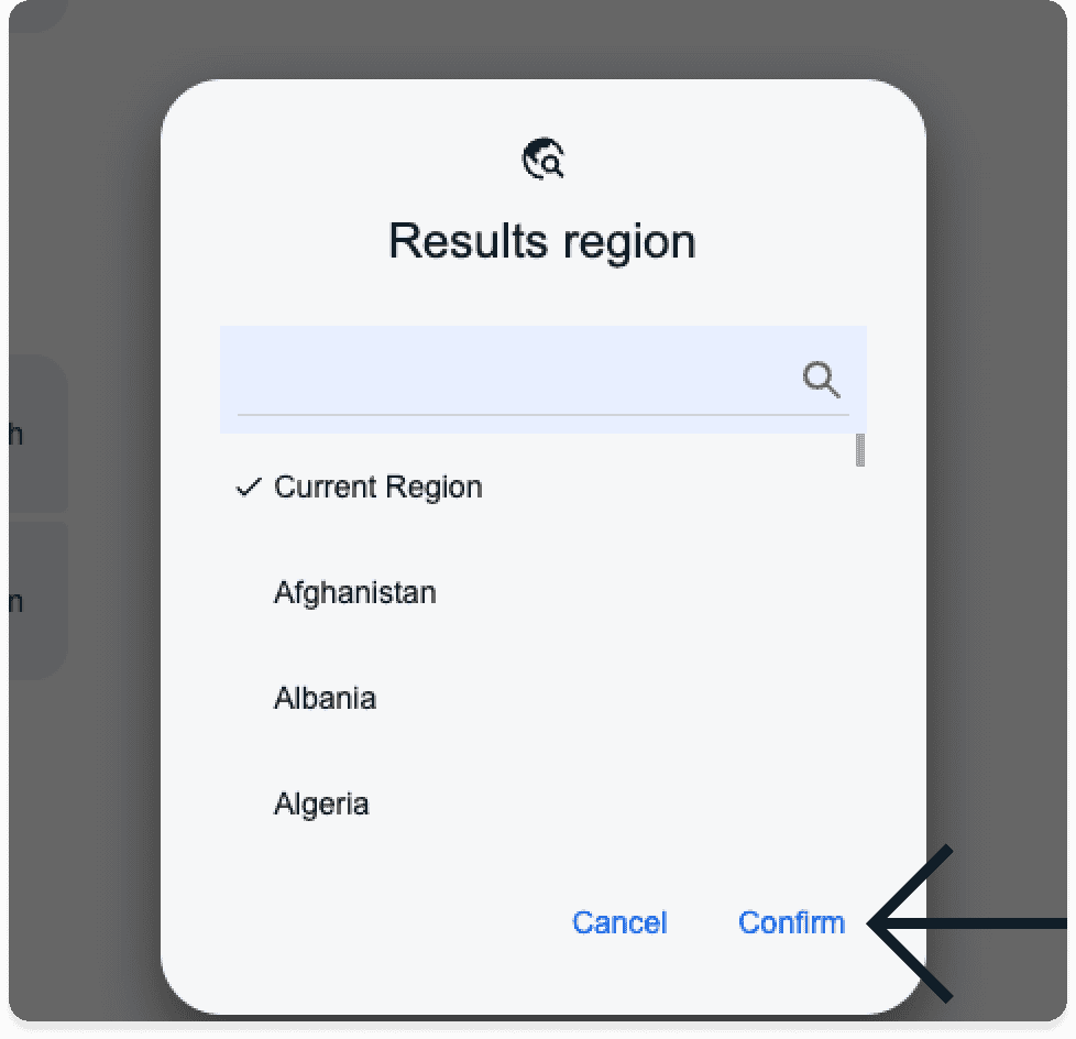 - В пункте Регион поиска выберите страну, для которой вы хотите видеть результаты поиска.