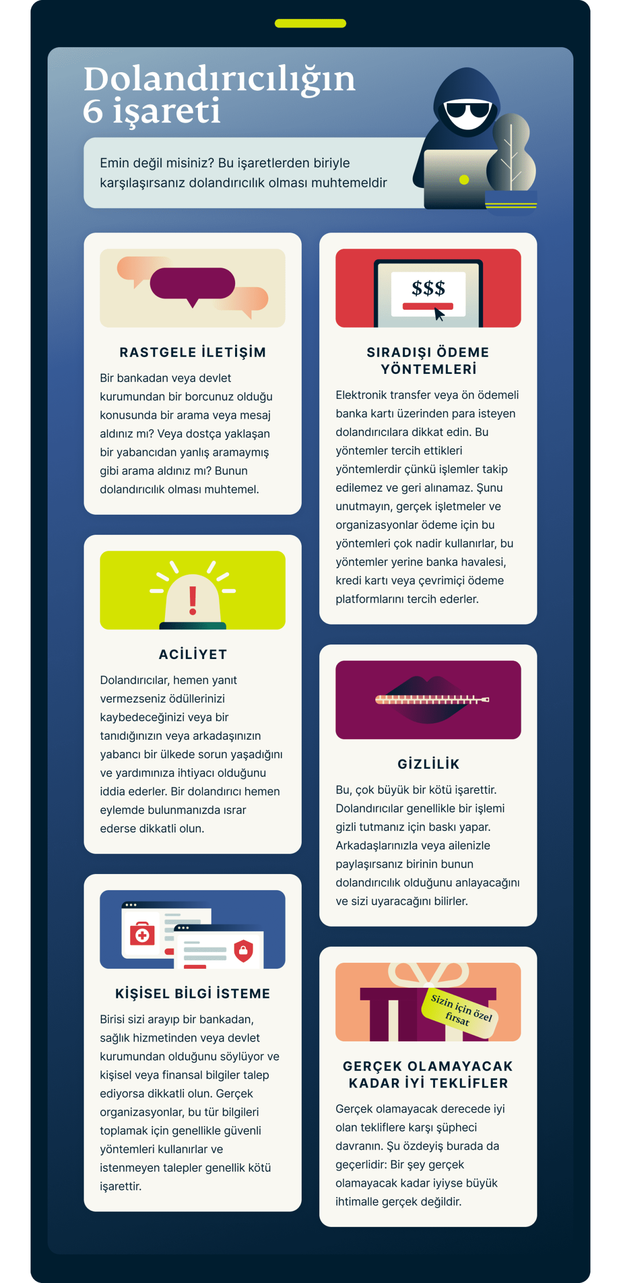 - Bonus: Bir dolandırıcılığın altı işaretini öğrenin.