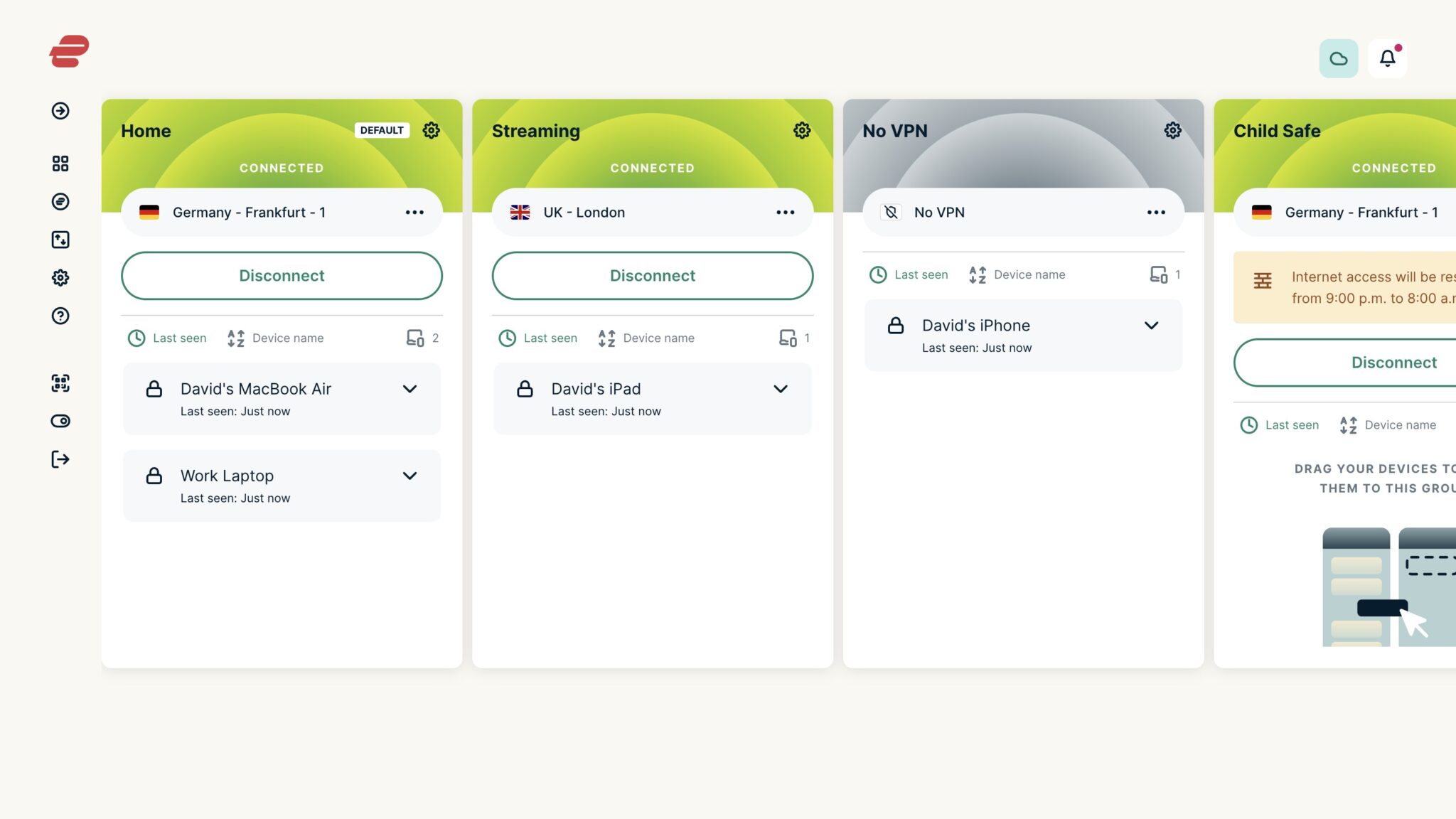 Now you can set a VPN location when creating a device group—no extra steps needed. Adjust your advanced protection settings, add a server location, and connect instantly, all in one go.