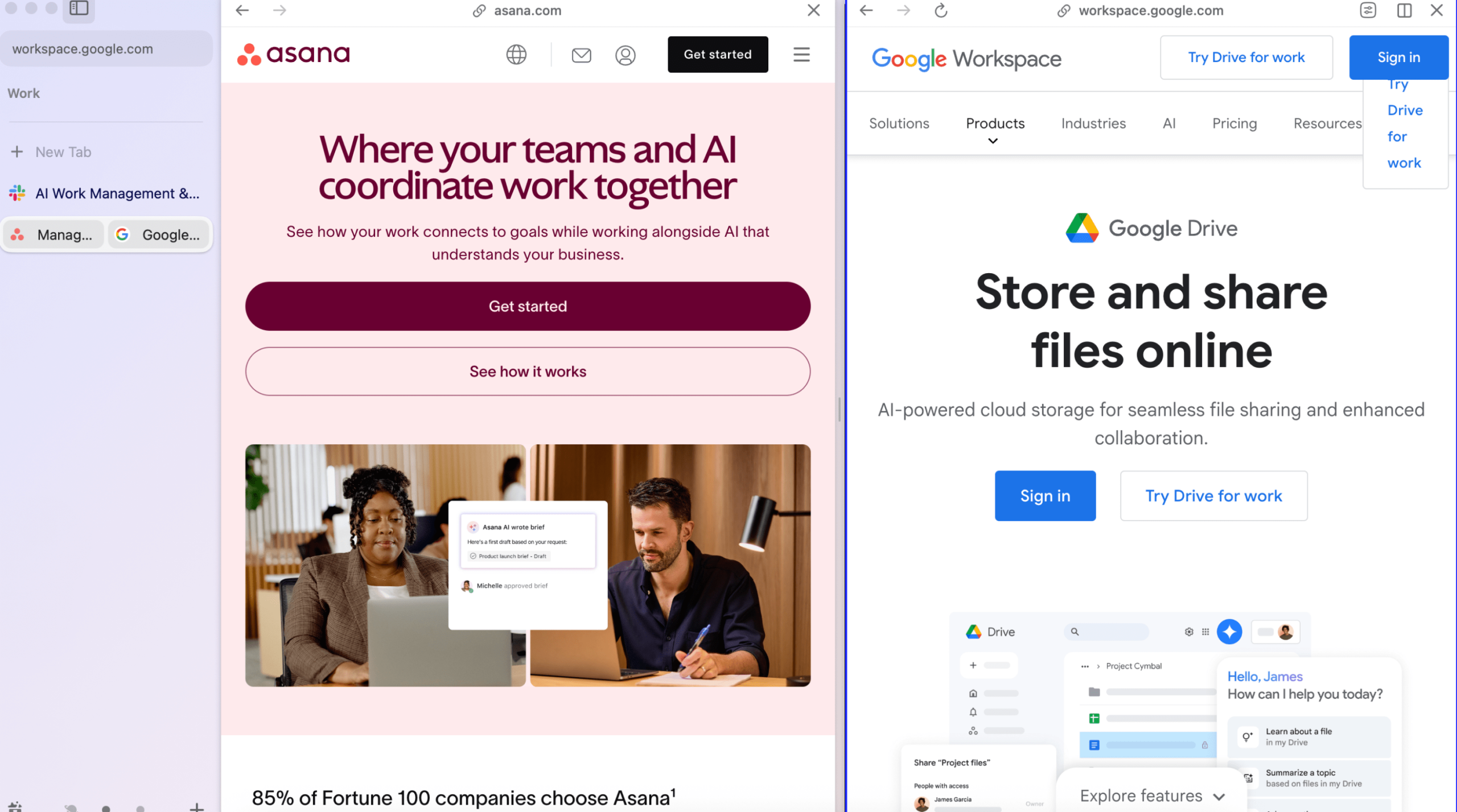 For example, here’s a Personal Space where you might keep tabs for entertainment and leisure, like Booking.com, Netflix, and YouTube.Arc browser showing a Space containing websites used personal, non-professional purposes.And here’s a Space hosting tabs related to work, containing sites like Asana, Slack, and Google Drive.Arc browser window highlighting a work-related Space.Tabs within each Space can be pinned, renamed, or set to disappear after a set time period, but you can always find them later in an archive. Spaces help prevent tab overload by keeping everything neatly separated.