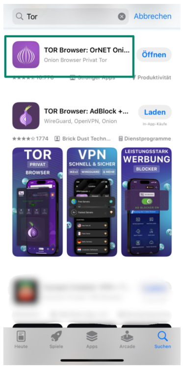 - Laden Sie den Onion Browser aus dem App Store herunter (vom Tor-Projekt empfohlen).