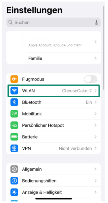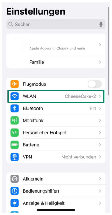 - Öffnen Sie die Einstellungen auf Ihrem iPhone und dann Wi-Fi.