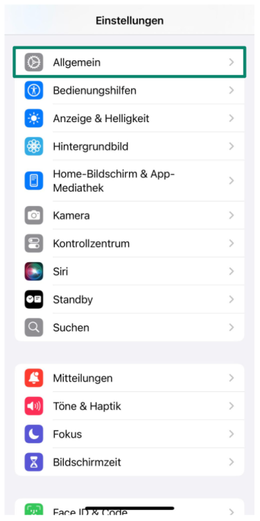 - Öffnen Sie Einstellungen und tippen Sie auf Allgemein.