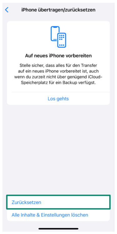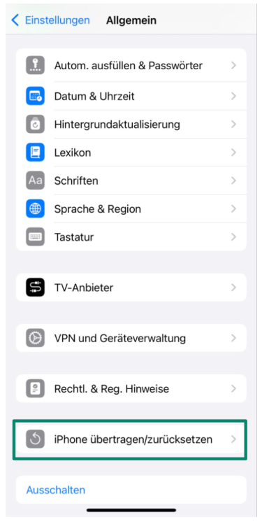 - Blättern Sie nach unten und wählen iPhone transferieren oder zurücksetzen.