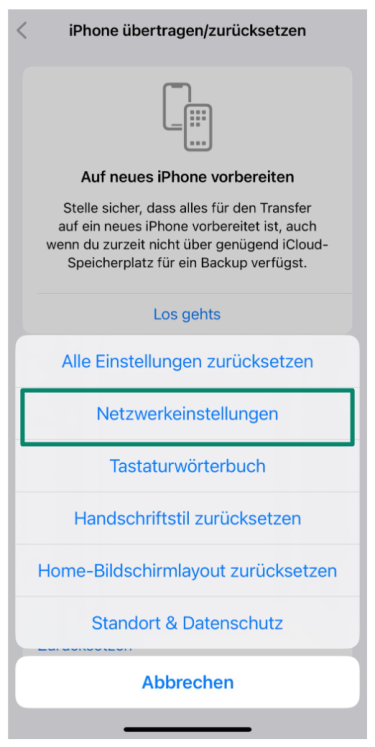- Wählen Sie Netzwerkeinstellungen zurücksetzen. Ihr iPhone wird sich neu starten und Ihre Netzwerkeinstellungen werden zurückgesetzt.