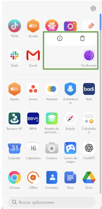 2. Mantén pulsado el icono hasta que aparezca un menú.