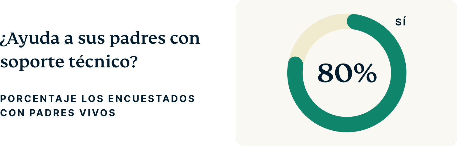 ¿Ayuda usted a sus padres con soporte técnico? (% de encuestados con padres vivos que dijeron sí)