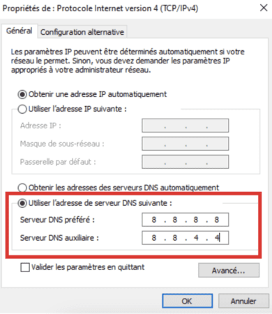- Google DNS : 8.8.8.8 et 8.8.4.4