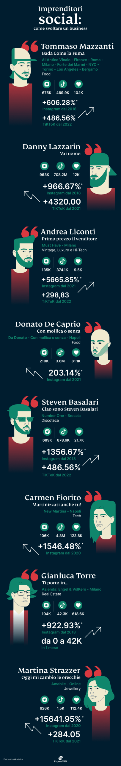 Viene definito “Il re delle trattative” non a caso: sui vari canali social infatti rende partecipe i suoi follower di tutti i dettagli delle attività e dei trucchi del mestiere con cui riesce a portare a termine ogni affare. L’altra grande esplosione poi è arrivata grazie a un paio di consigli giusti e alla condivisione online delle sue doti: risultato? Soltanto su Instagram in meno di due anni una crescita del 5.665% (senza refusi, proprio così). Il risultato oggi è un negozio a Milano che si occupa di Vintage, Luxury e Hi-Tech: il suo “Must Have” è già diventato punto di riferimento e chi passa nel locale difficilmente riesce a non farsi convincere.