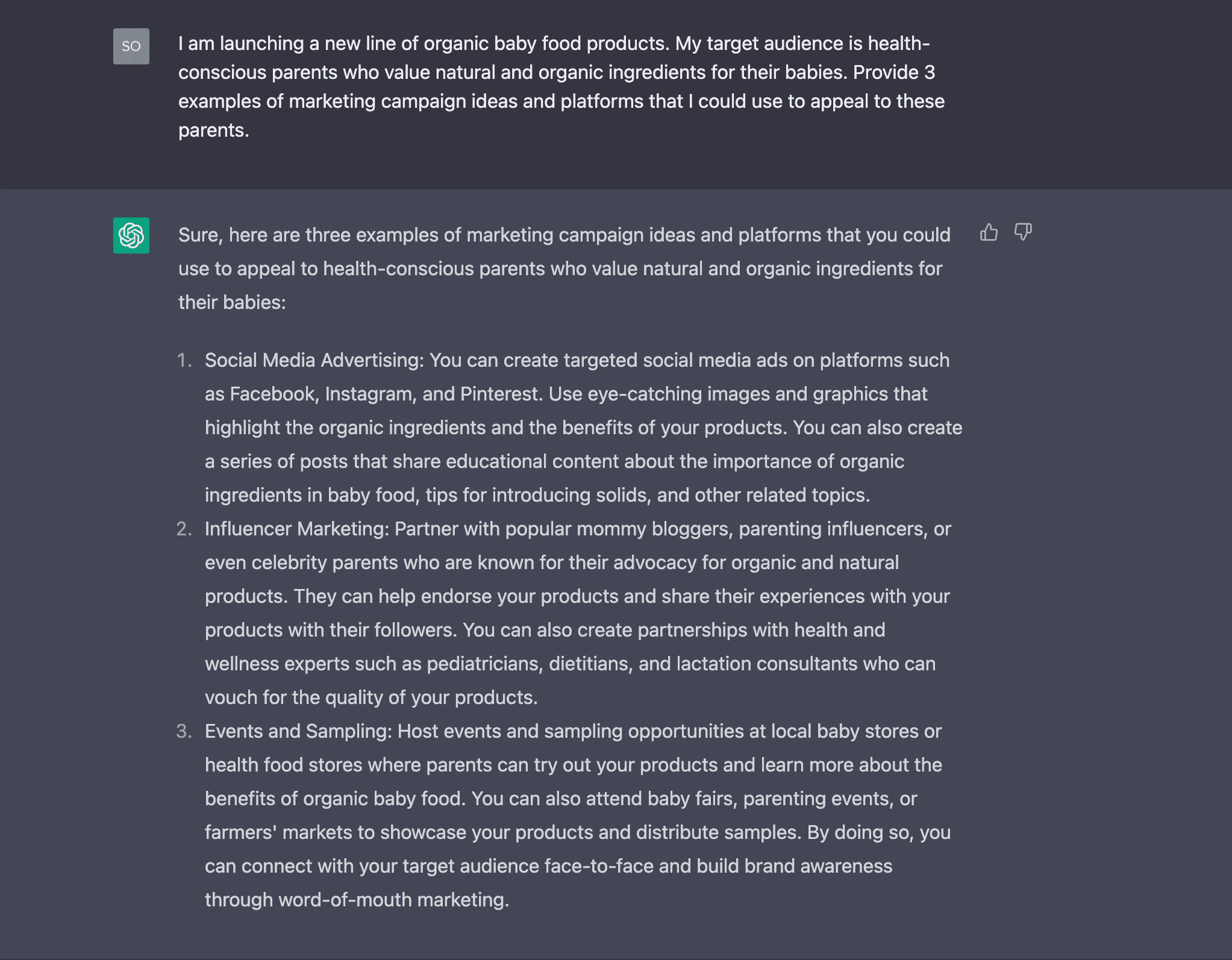 新しいアイデアを生み出す1つの方法は、ターゲットオーディエンスの立場になって考えることです。例えば、新商品のマーケティングのアイデアを出そうとしているのであれば、ChatGPTに潜在顧客の立場になって考えてもらい、何が魅力的なのかヒントを提供してもらうことができます。