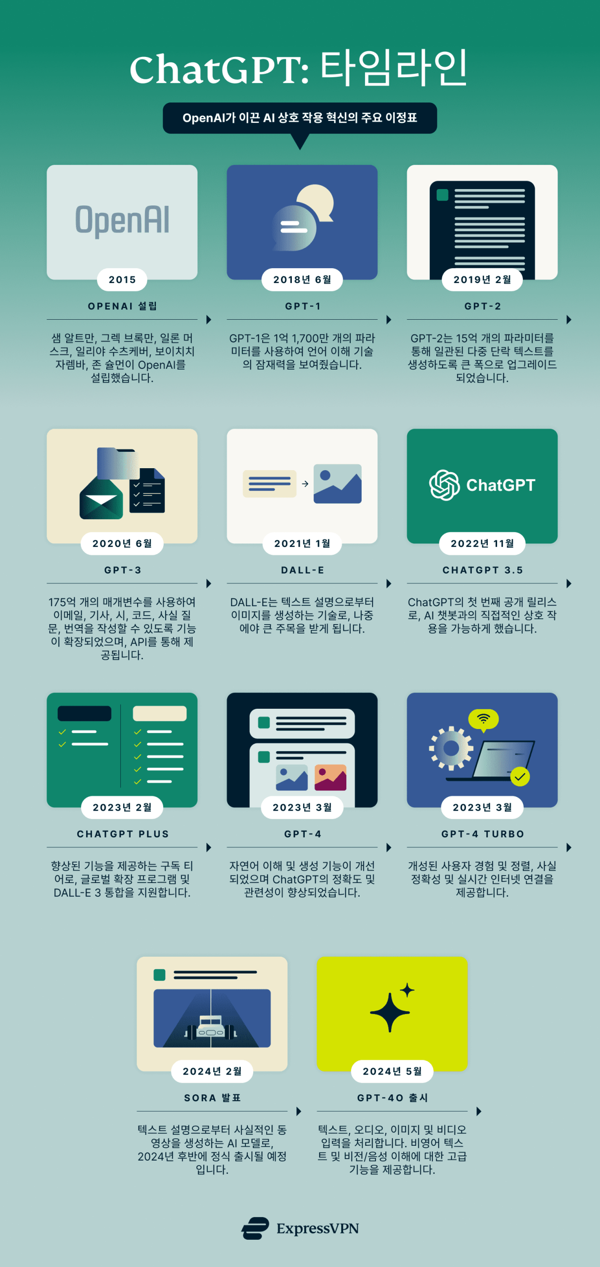 거의 2년 전, OpenAI는 업무와 개인 생활 전반에 걸쳐 많은 이들의 삶에 필수적인 존재가 된 AI 챗봇 ChatGPT를 대중에게 선보였습니다. ChatGPT는 2022년 출시 후 5일 만에 사용자 100만 명을 돌파하며 즉각적인 영향력을 드러내 동시에 이 새로운 기술을 사용해보고자 하는 전 세계의 열망을 보여주었습니다.