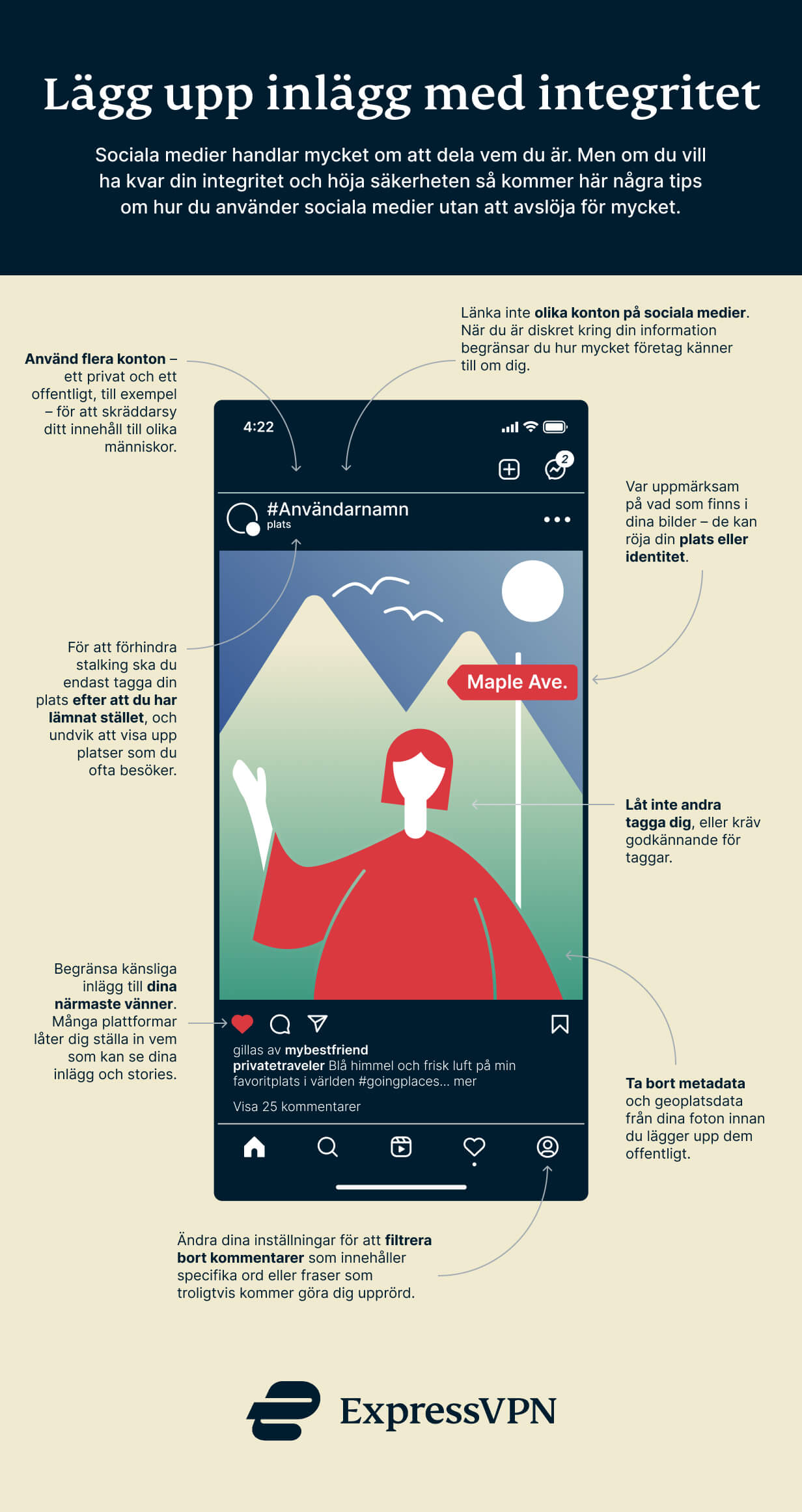 Infografik: Surfa tryggt och privat på sociala medier