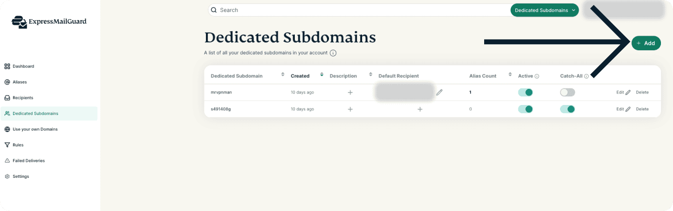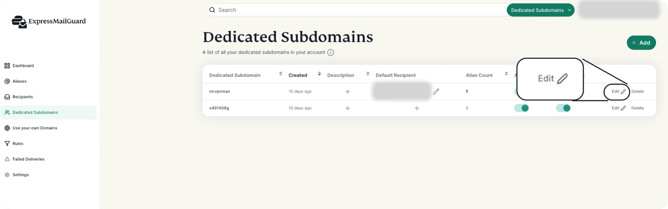 This guide will show you how to add and edit Dedicated Subdomains in ExpressMailGuard.