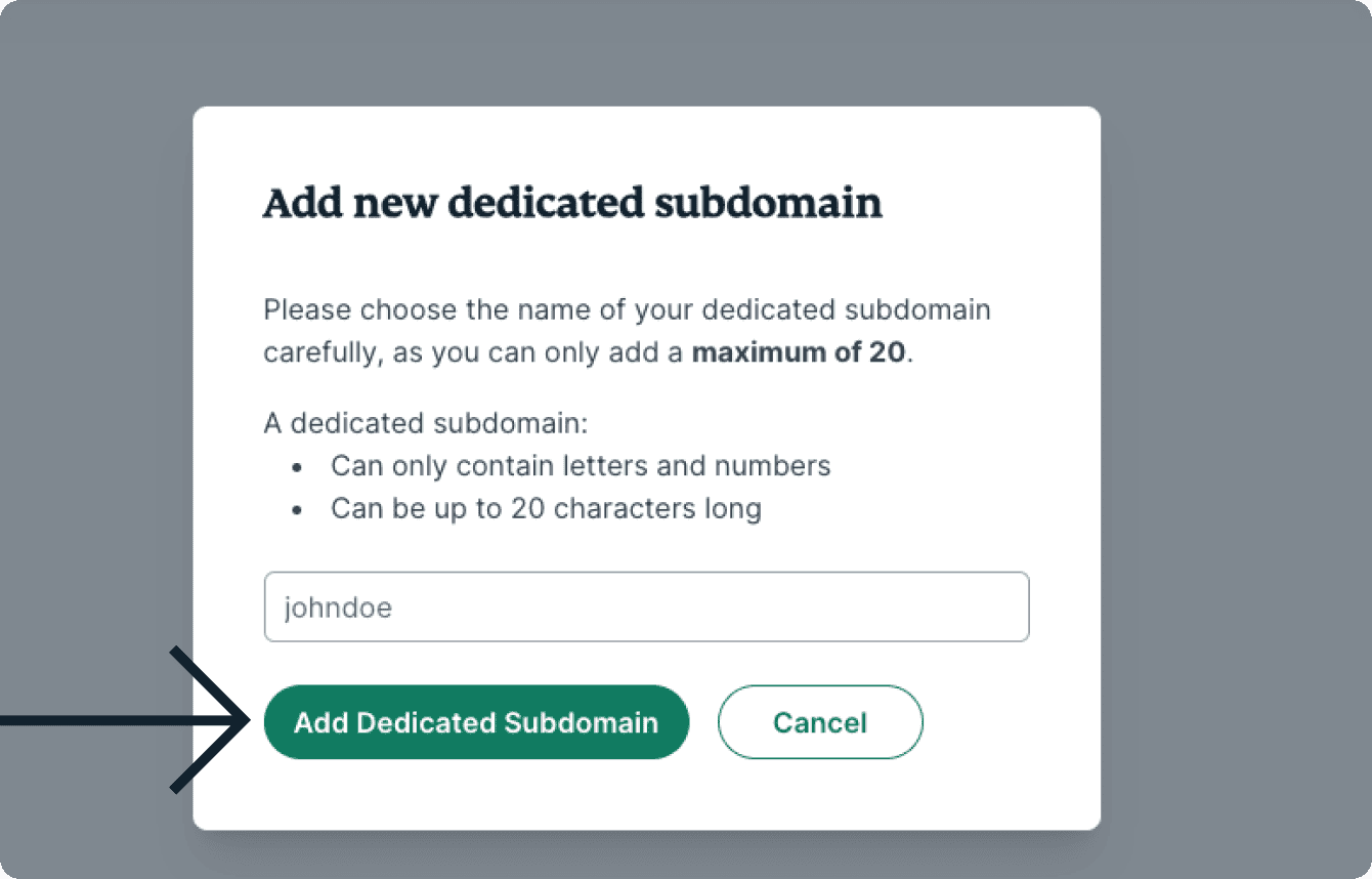 - Click Add Dedicated Subdomain.